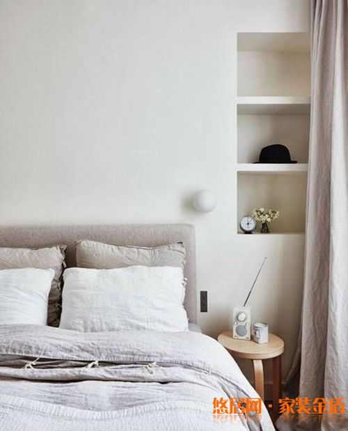保持白色墙面的纯净度和包容性,突出表现家具、软装的美感。(保证家具、软装要有看头才行哦!) 2.光线 除了满足照明,还增加了空间的层次感,而灯具本身也具备装饰效果。 3.材质 白色墙面可以不用限制材质,选择带有凹凸、纹理的材质来作为装饰也很不错,还可以与白色乳胶漆材质形成对比,让视觉更丰富,画面更丰满。砖墙、艺术漆、硅藻泥、护墙板等都是不错的选择。 4. 储物柜、储物搁板 一般分内嵌式储物和独立式储物两种。内嵌式储物的整体性好,而独立式储物则更加灵活。 5. 植物 植物不仅美观,还能净化空气,无论是什么风格的装修,都可以在家里摆放一些。 6.纺织品 纺织品是软装不可或缺的一部分,可以作为窗帘、地毯、床品、抱枕使用,合适的造型图案会有很好的装饰效果,挂上墙也是不错的选择,可以缓冲墙面的坚硬感,让空间显得更加柔和。 7.挂画/图片架 挂画是比较灵活也很有专属感的一种装饰,因为可以使用自己的照片,如果家中有小宝贝的话,就可以让他尽情发挥创作了,是不是很有爱! 8.挂件/饰品/收集品/镜子 现在饰品丰富多样,完全可以根据自己的喜好随性搭配,不同的组合有不同的效果,发挥想象,说不定有意想不到的惊喜哟!