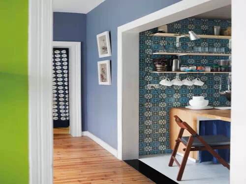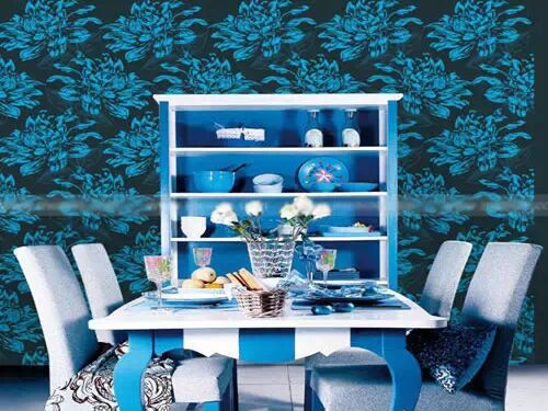 7、蓝色具有镇静、安神的作用,蓝色清新淡雅,是一种可以让人产生想象的颜色,但是蓝色隶属冷色系,不宜用在餐厅中,否则会降低食欲,不如暖色调对我们的食欲又刺激作用。